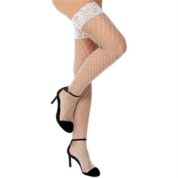 Hermosas medias de red en sutil acabado con puntilla siliconada, y delicado encaje, el complemento ideal de tus momentos de sensualidad y erotismos. Despierta sensaciones y atrae miradas con estas preciosa prenda de Lencería, disponible en color blanco.